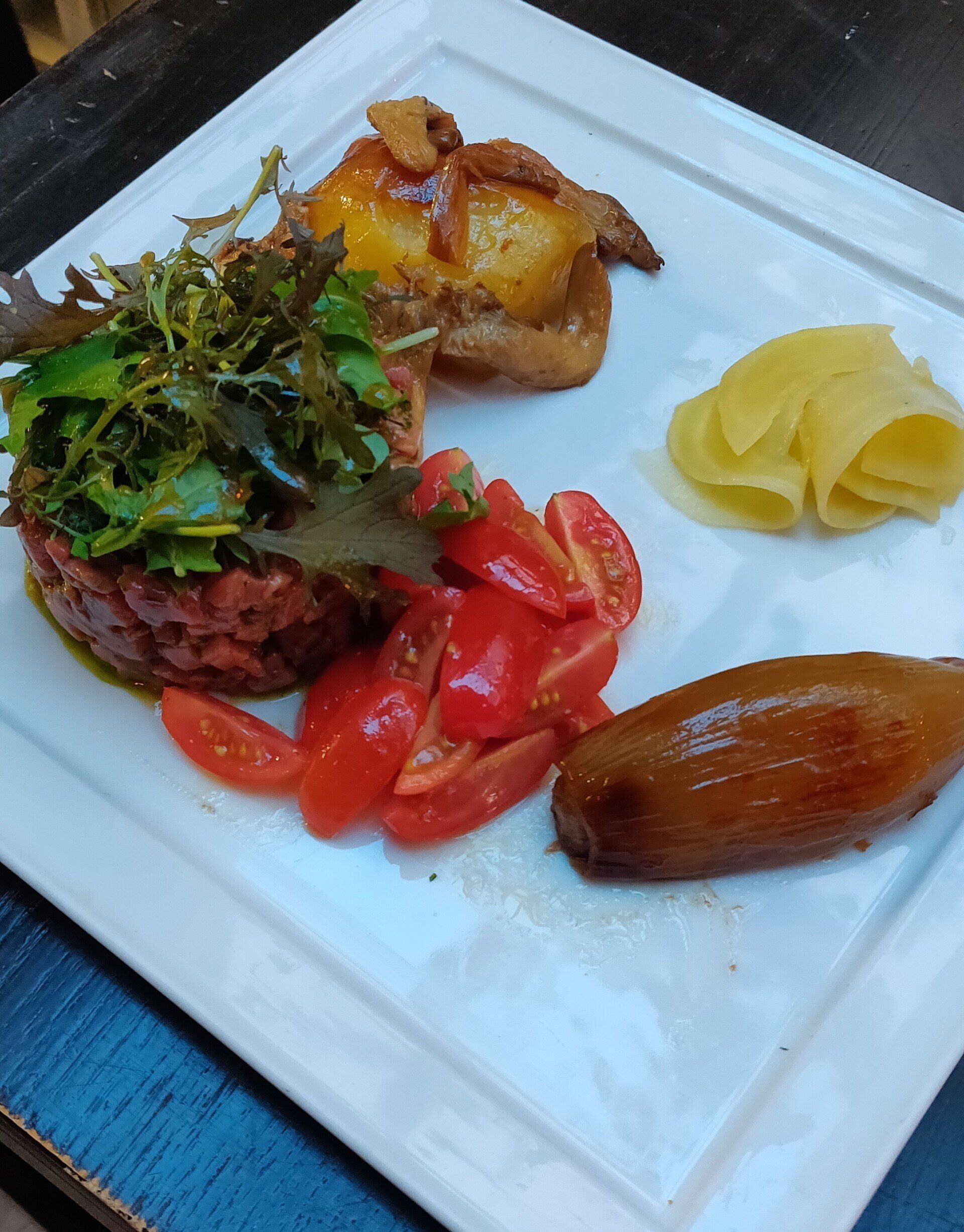 Dès le début, nous avons une excellente sélection de fromages artisanaux et de charcuterie italienne et espagnole, mais lorsque nous avons été soudainement confrontés à une fermeture obligatoire en mars 2020, nous avons installé une cuisine complète. De cette façon, nous pouvons élargir nos collations et nos plats que nous servons avec les vins dans des conditions optimales. Nous travaillons des plats de saison, avec des produits locaux et bio, frais de la ferme. Tout est fait maison et tous les plats sont disponibles en entrée ou en plat.